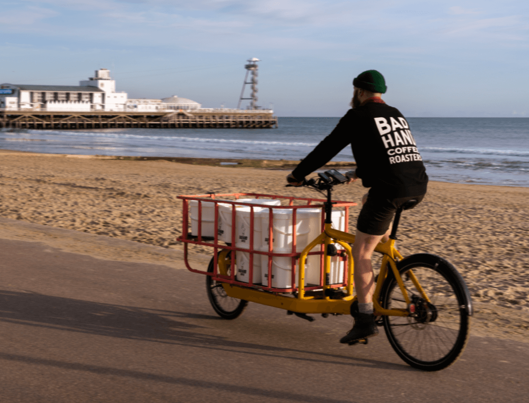 Meet Bad Hand Coffe, a coffee roaster in Bournemouth, UK who do zero-emission deliveries on their Bullitt.